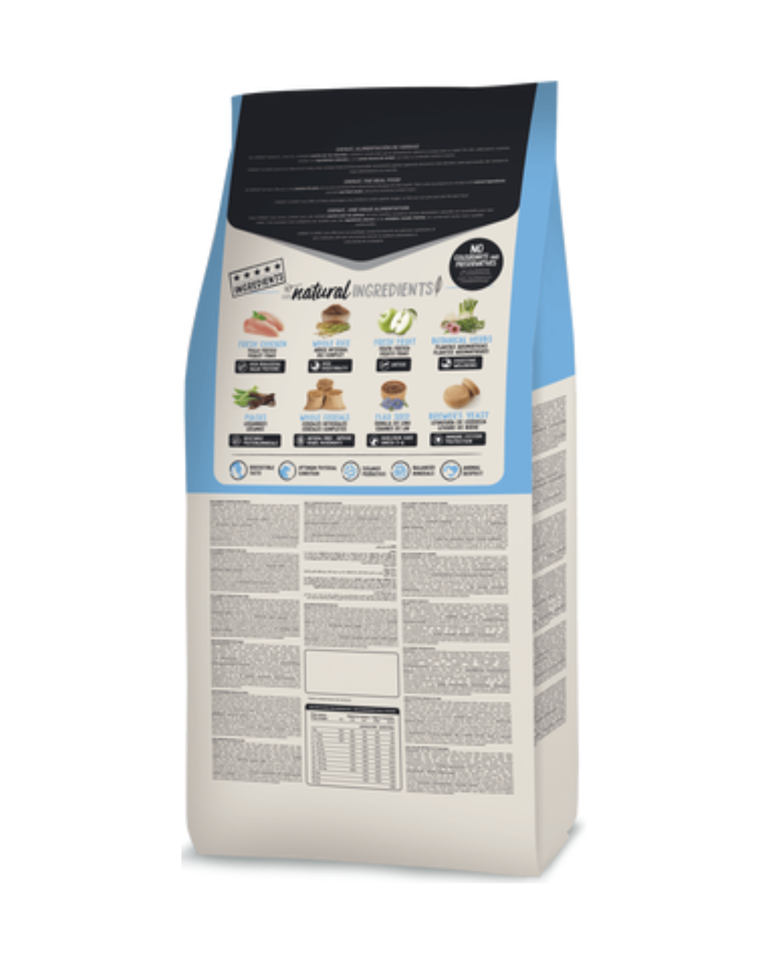 Su fórmula rica en proteínas de alta calidad, con pollo fresco y carnes deshidratadas, aporta los nutrientes esenciales para un desarrollo muscular óptimo, unos huesos fuertes y un sistema inmunitario reforzado.