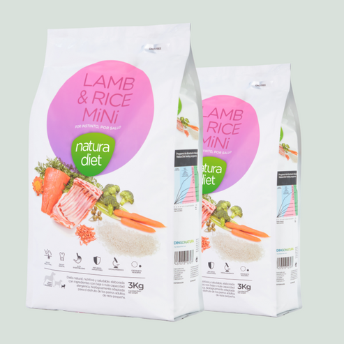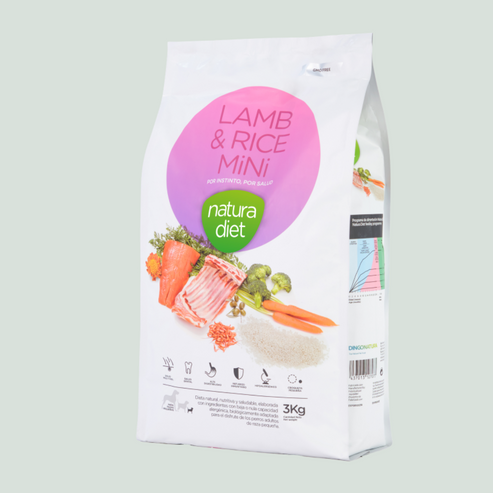 Natura Diet Lamb & Rice Mini es un alimento completo, equilibrado e hipoalergénico, elaborado con ingredientes naturales de baja o nula capacidad alergénica, especialmente formulado para perros adultos de raza pequeña.